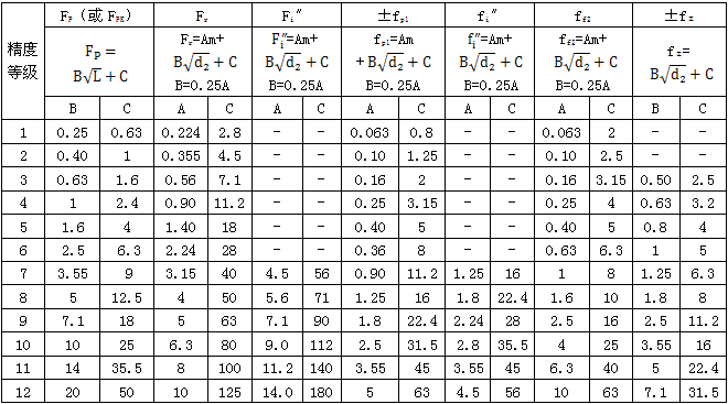 注:①當三個公差組的精度等級不同時,按最高精度等級確定公差。