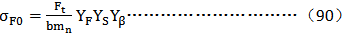 式中:σF0——齒根應力的基本值 ,N/mm,對於大、小齒輪應分别確定。