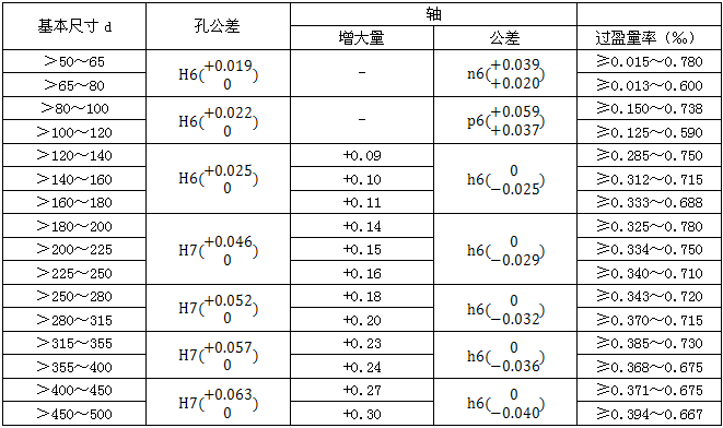 爲瞭保證齒輪的傳動精度,和防止齒輪孔與軸之間可能因産生間隙,而導緻腐蝕現象,所以當齒輪及採用H6,H7公差帶,軸採用h6公差帶時,将軸的名義尺寸加一增大量,進行輕熱配合,表1-146中所列的輕熱壓配合尺寸,僅适用於鍵聯結的情況下 。
