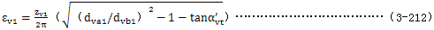 式中εv­——齒頂重合度,取εv1­或εv2­中的較大者,εv1­及εv2­由公式(3-212)及(3-213)確定。