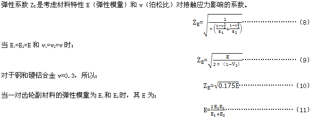 齒面接觸疲勞(點蝕)強度計算彈性系數ZE(GB/T10062.2-2003)