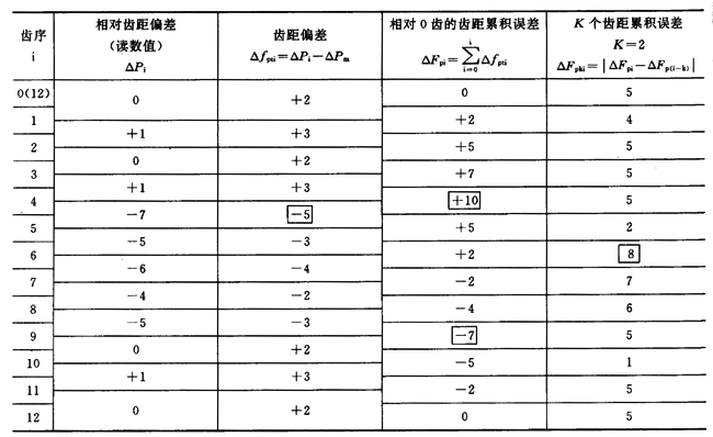 從逐齒測量數據計算fp、Δfpk和Δfpt的方法列於表2,以Z=12、K=2的齒輪爲例 。