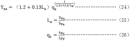 應力修正系數Ysa­是把名義彎曲應力轉換成齒根應力基本值的系數。它考慮瞭齒根過渡曲線處的應力集中的效應,以及彎曲應力以外的其他應力對齒根應力的影響(進一步的說明見GB/T3480)。