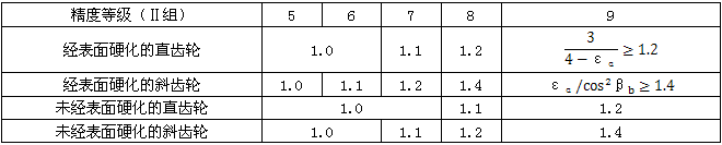 表5齒間載荷分配系數KHα