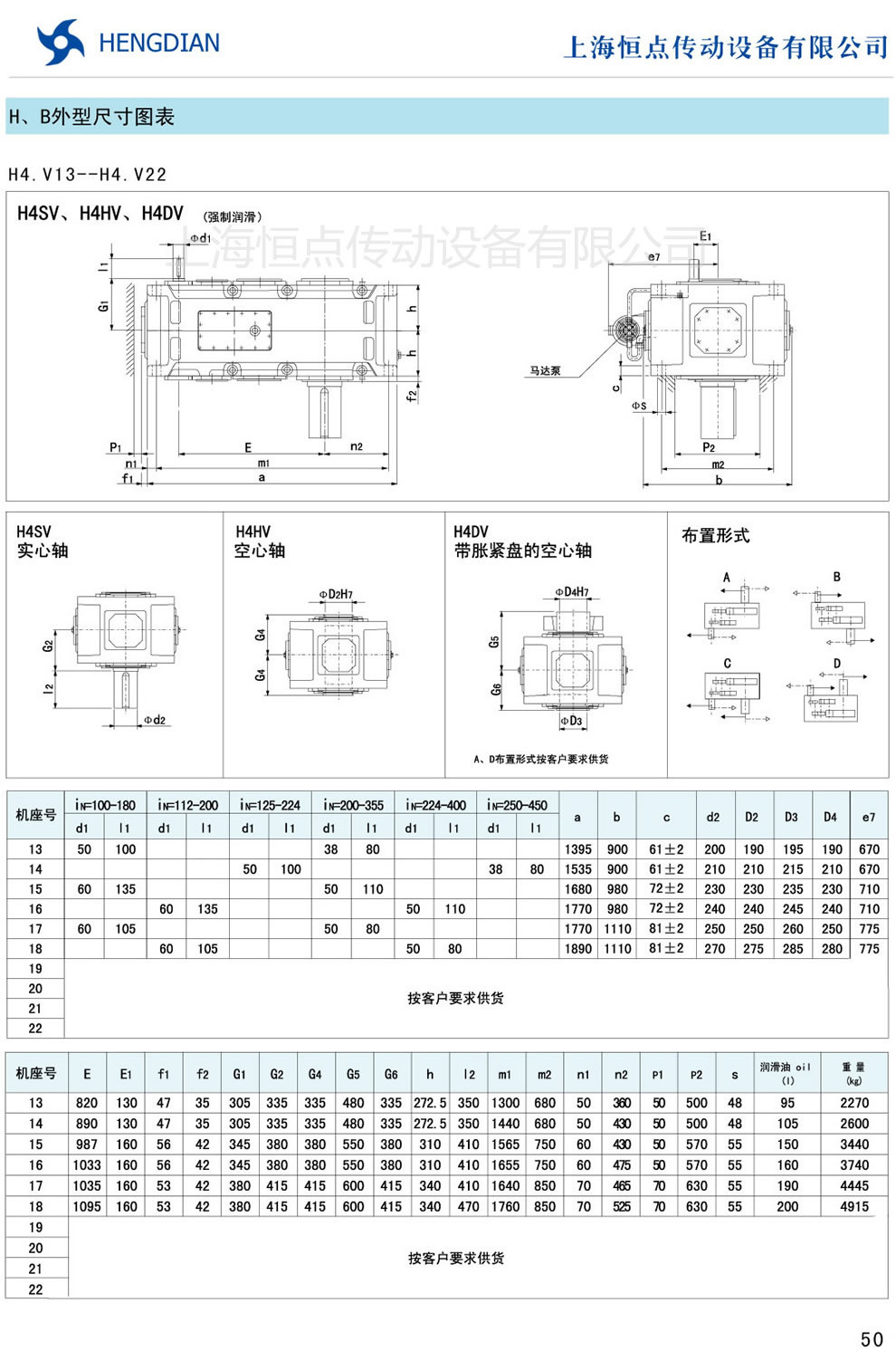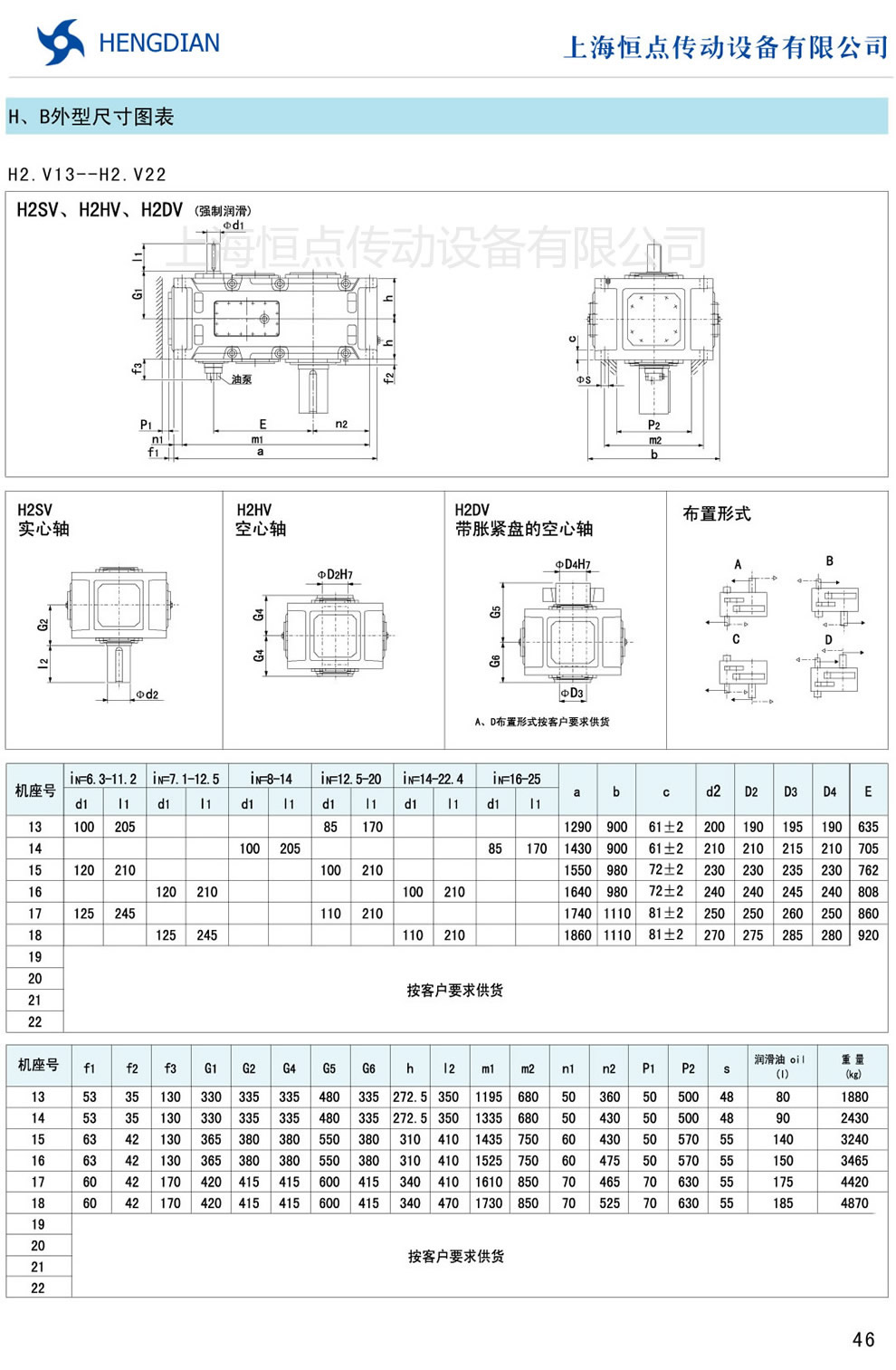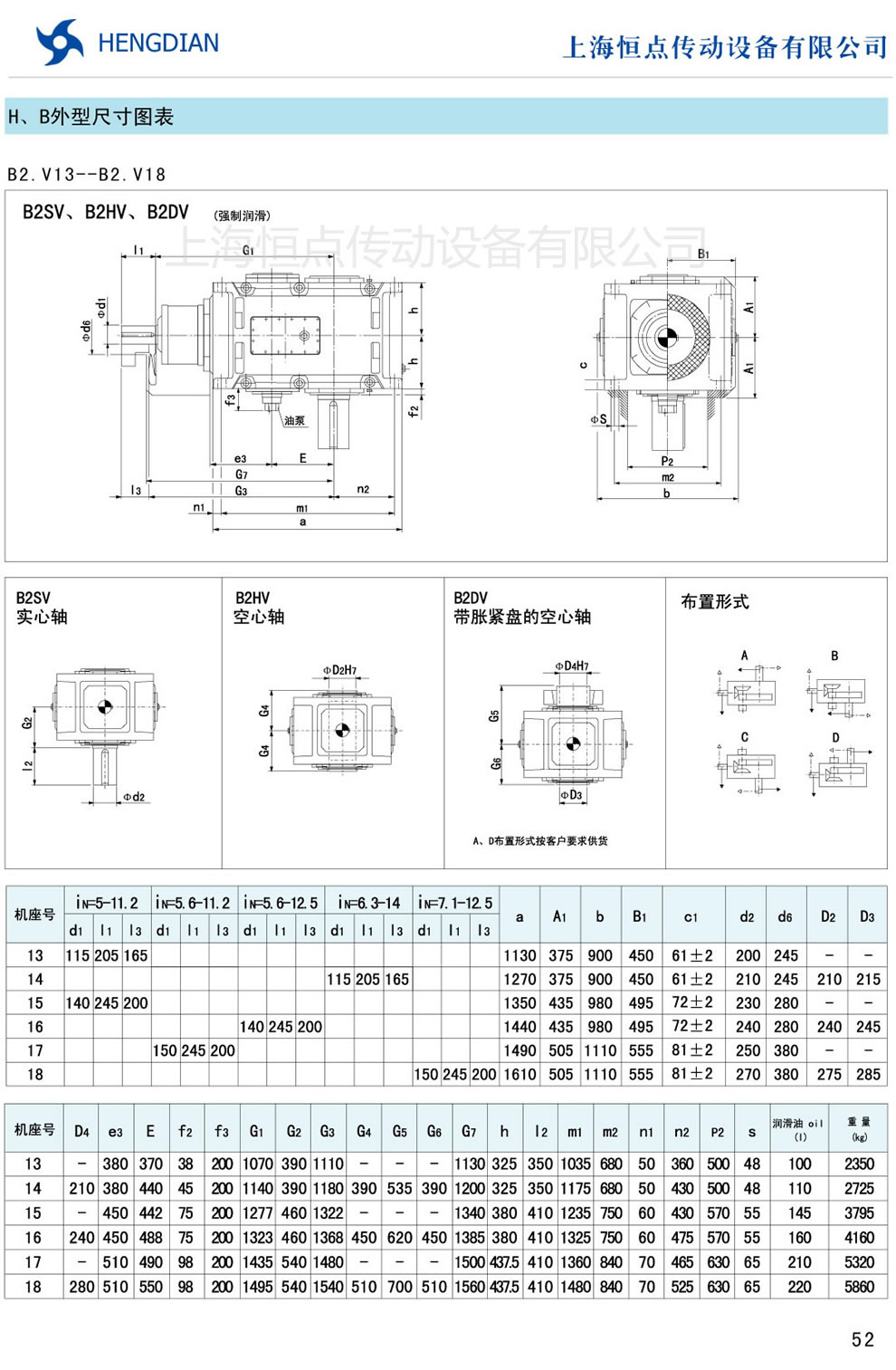13 - HB系列外形尺寸(2) 14 - HB系列軸布置形式