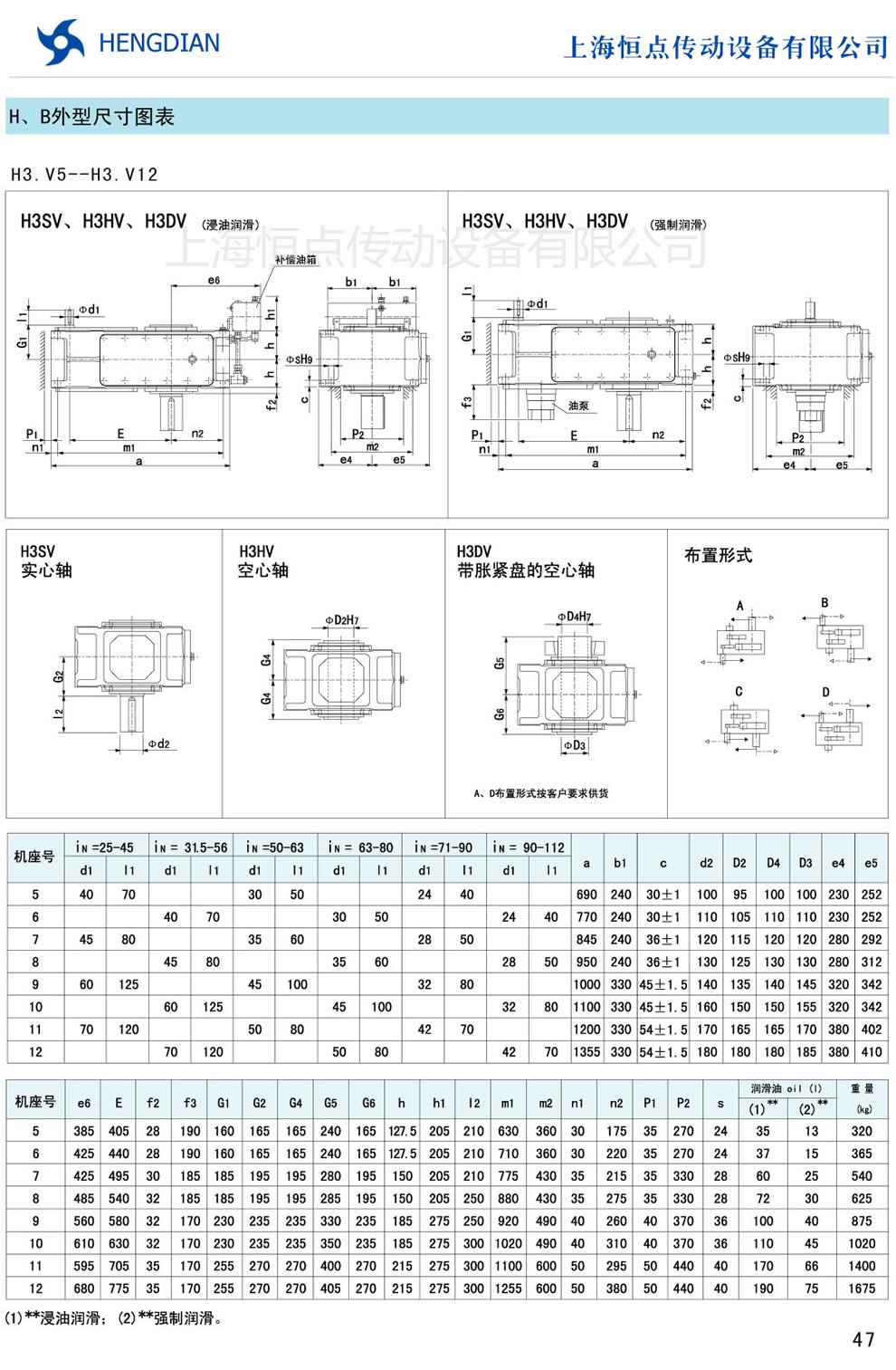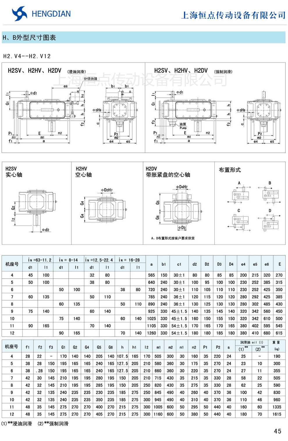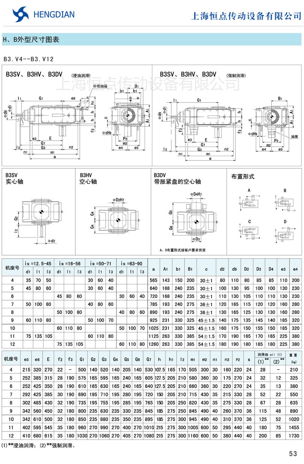 13 - HB系列外形尺寸(2) 14 - HB系列軸布置形式