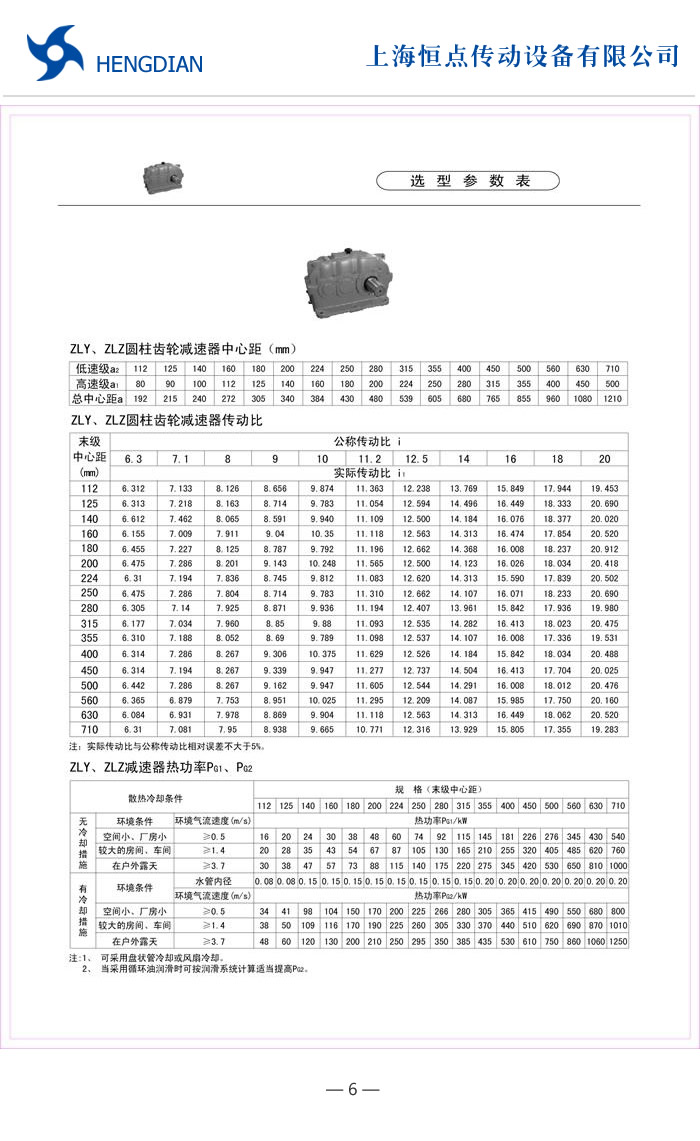 ZLY傳動比表 - Z系列硬齒面圓柱齒輪減速機